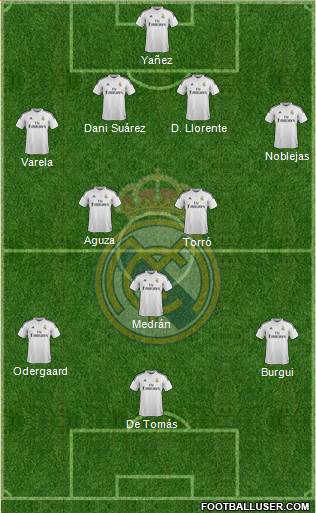 Centrocampistas: Marcos Llorente, Medrán, Torró, Javi Muñoz, Burgui, Aguza, Odegaard y Belima.